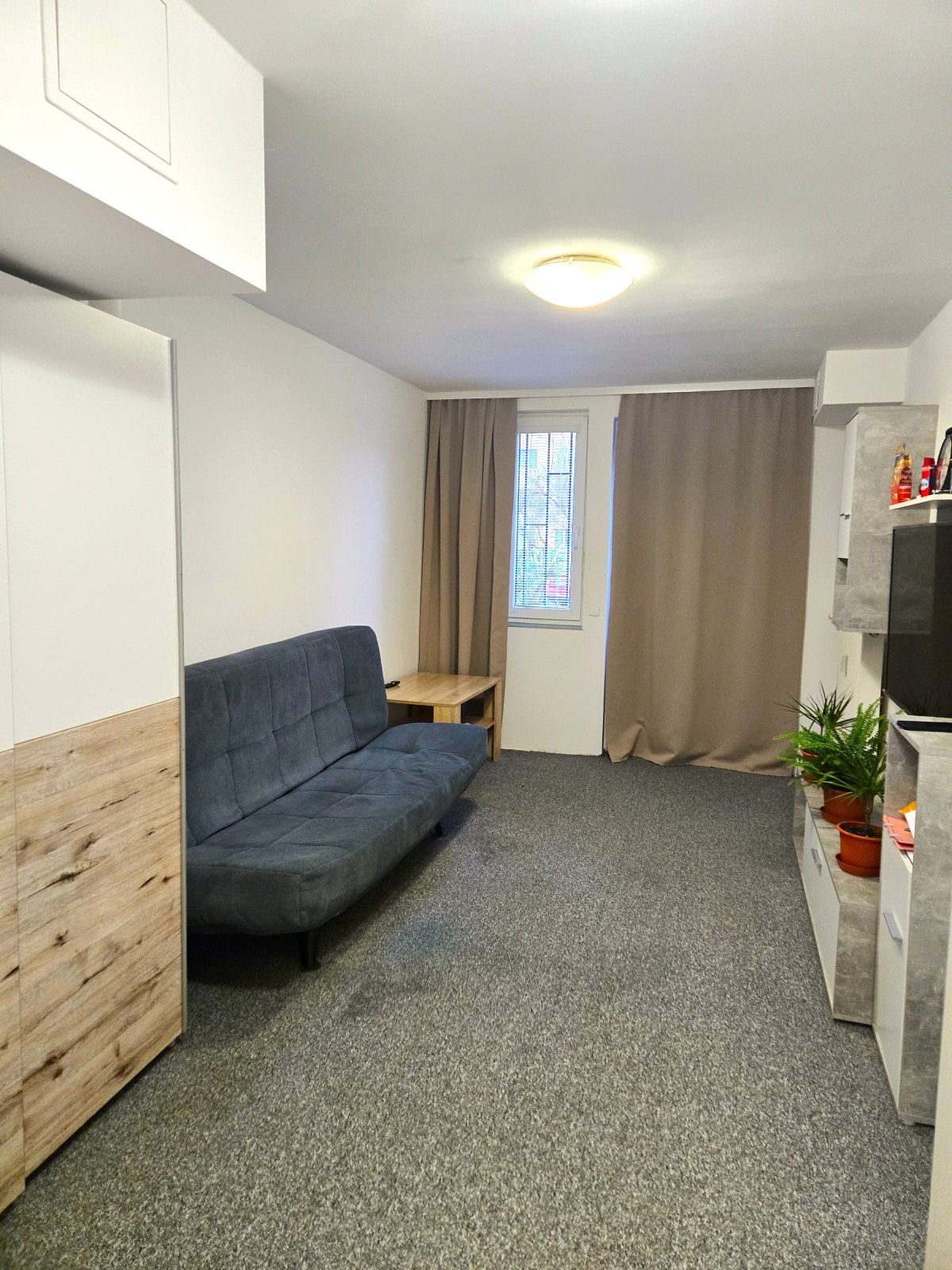 Účelně řešená dispozice: zádveří, pokoj s kuchyňským koutem,